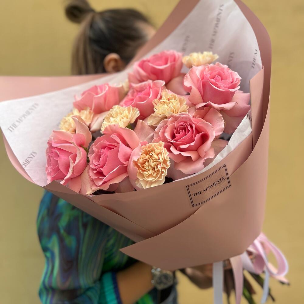 Роза - 7 шт. Упаковка - 5 шт. Диантус - 6 шт.